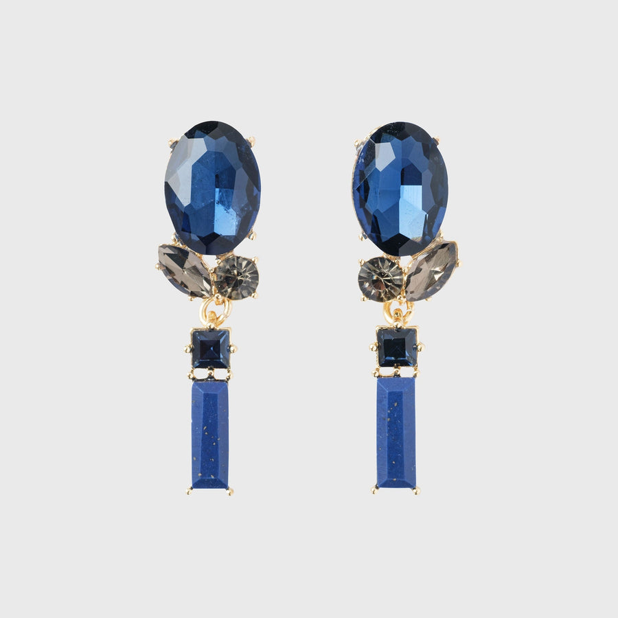 This is a stunning earring for any event or everyday glam! The navy makes it perfect for the bride in a fabulous dress or for anyone headed to brunch with a simple white t-shirt. Elegant and yet a strong statement earring... the perfect combo!