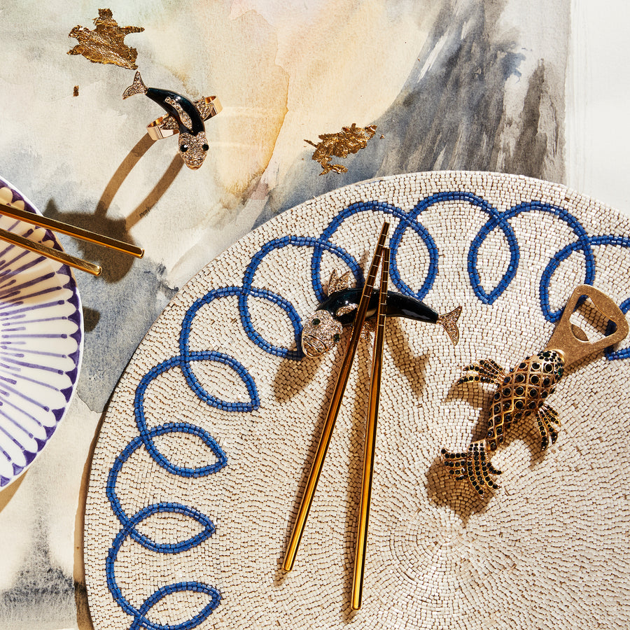 I am a big fan of sushi and Chinese food. I always like to make it feel like a special occasion when we order in and thought what would make those meals a little more fabulous? Beautiful, hand-enameled koi chopstick rests of course! Fancy chopsticks are the way to go!