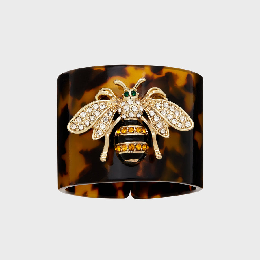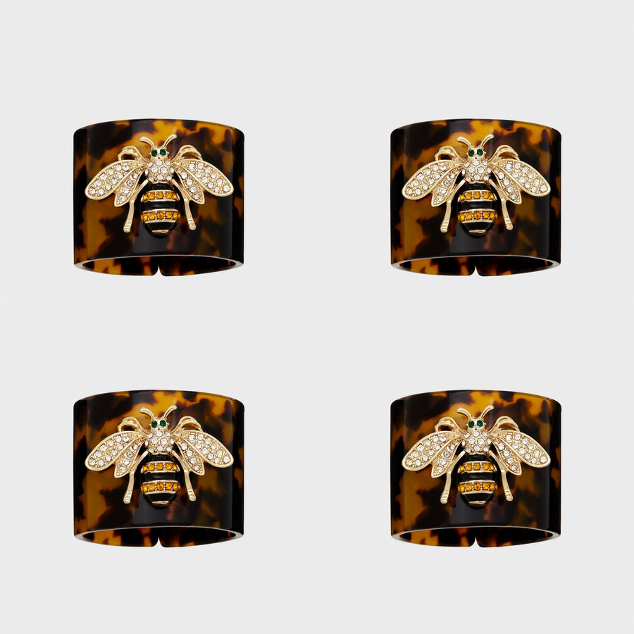 Our best selling stripey bee on a super chic tortoiseshell resin napkin ring! The resin rings make them great for everyday , nothing too precious ... just fun and buzzy! A perfect napkin ring for a casual chic lunch tablescape or making take out with the family feel a little more elegant!