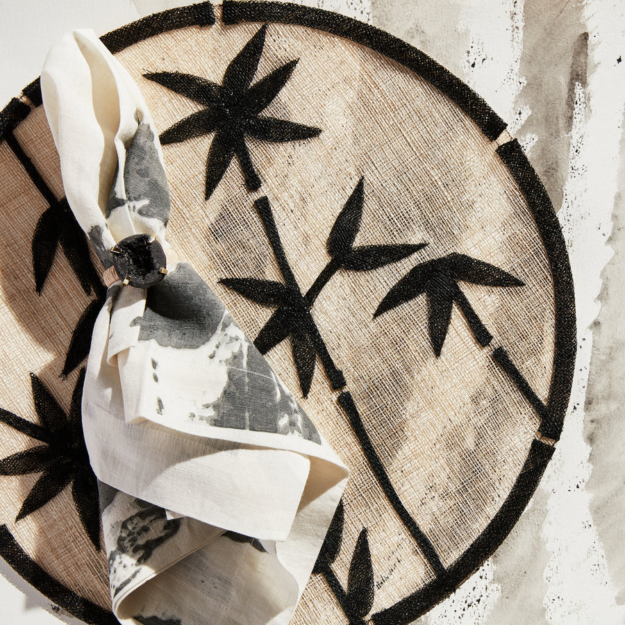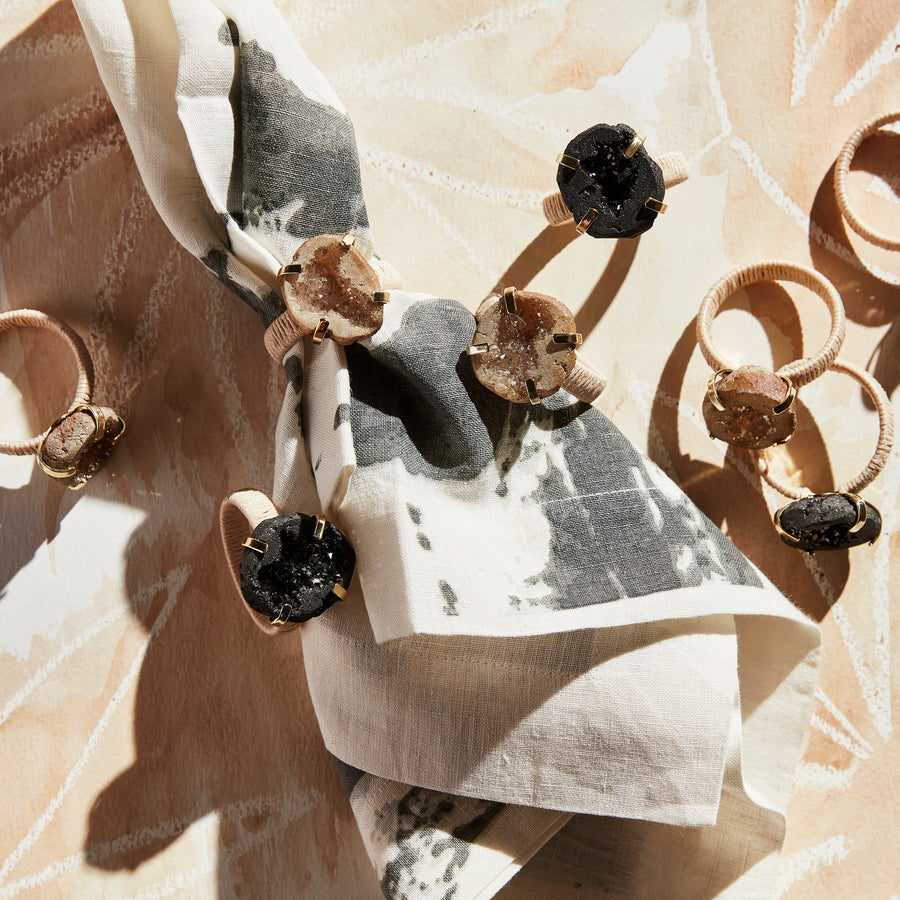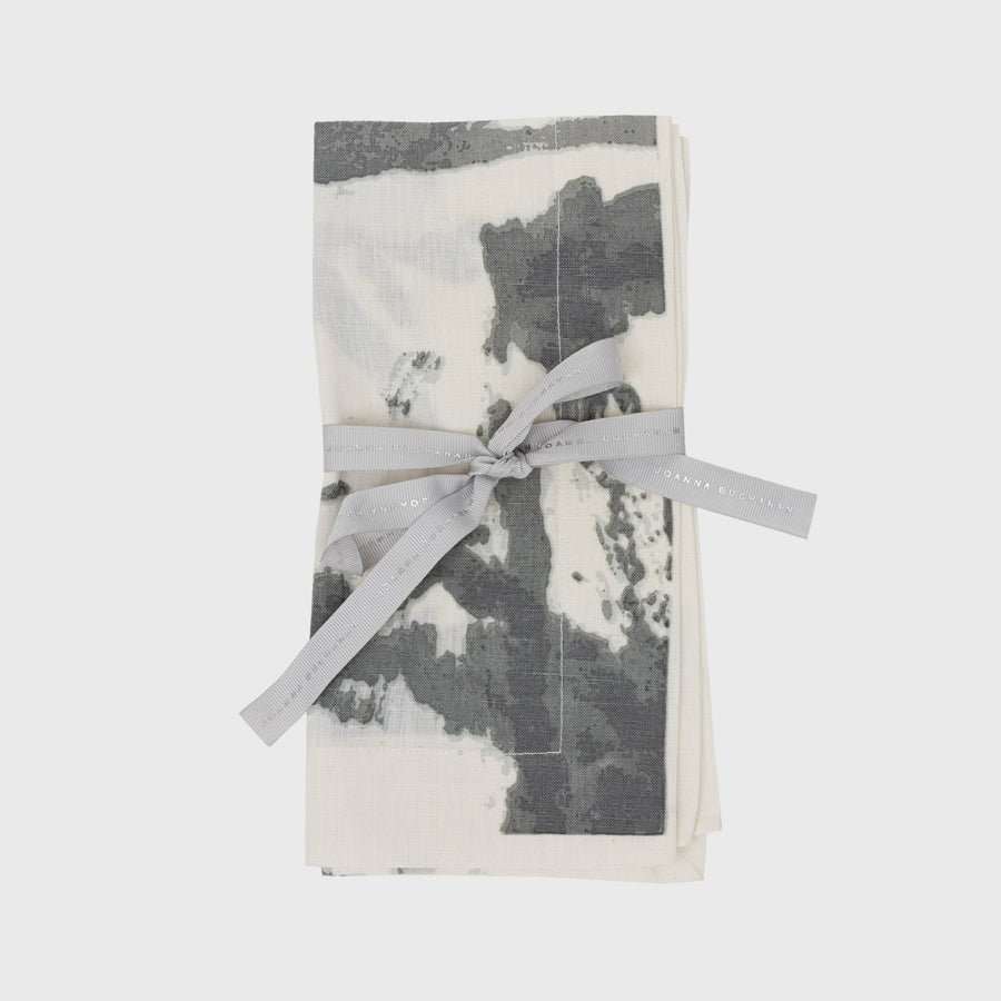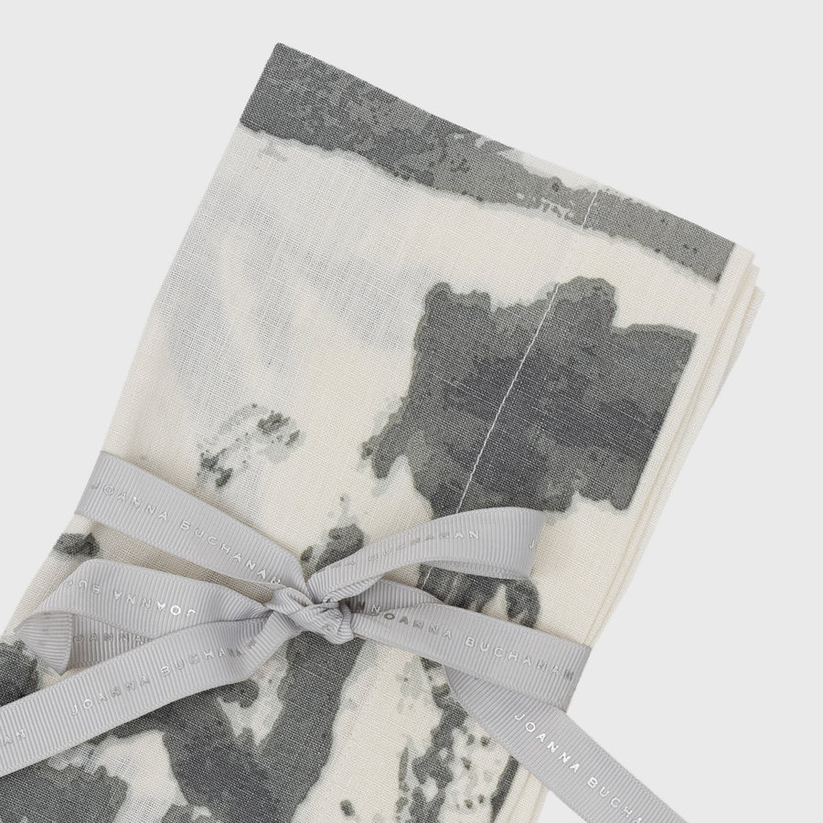 Hand-painted by moi, Joanna, we replicated my signature brushstroke design in grey on crisp white linen dinner napkins. This warm grey works so well with all of our gold napkin rings and the pattern is a stunning 'blank' canvas that works with so much.