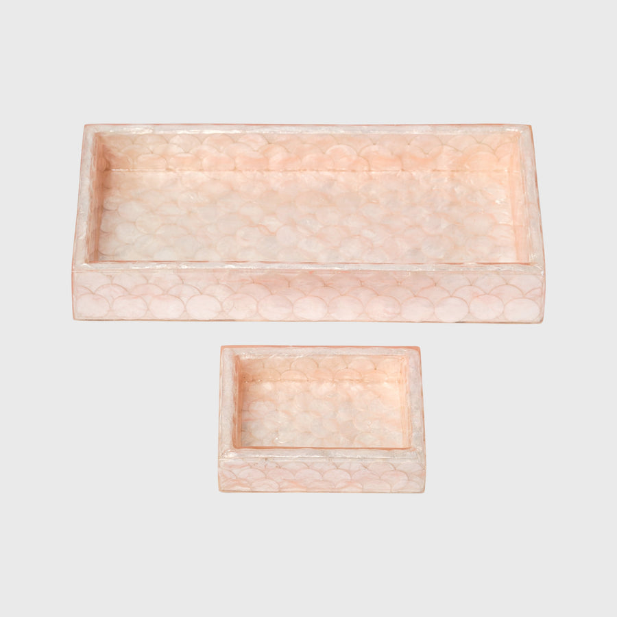 And the small one is a paperclip heaven or a wonderful soap dish. The choice is yours! I love the look and feel of hand-pieced capiz shell on these decorative trays and the colours are so feminine and pretty for a bathroom.