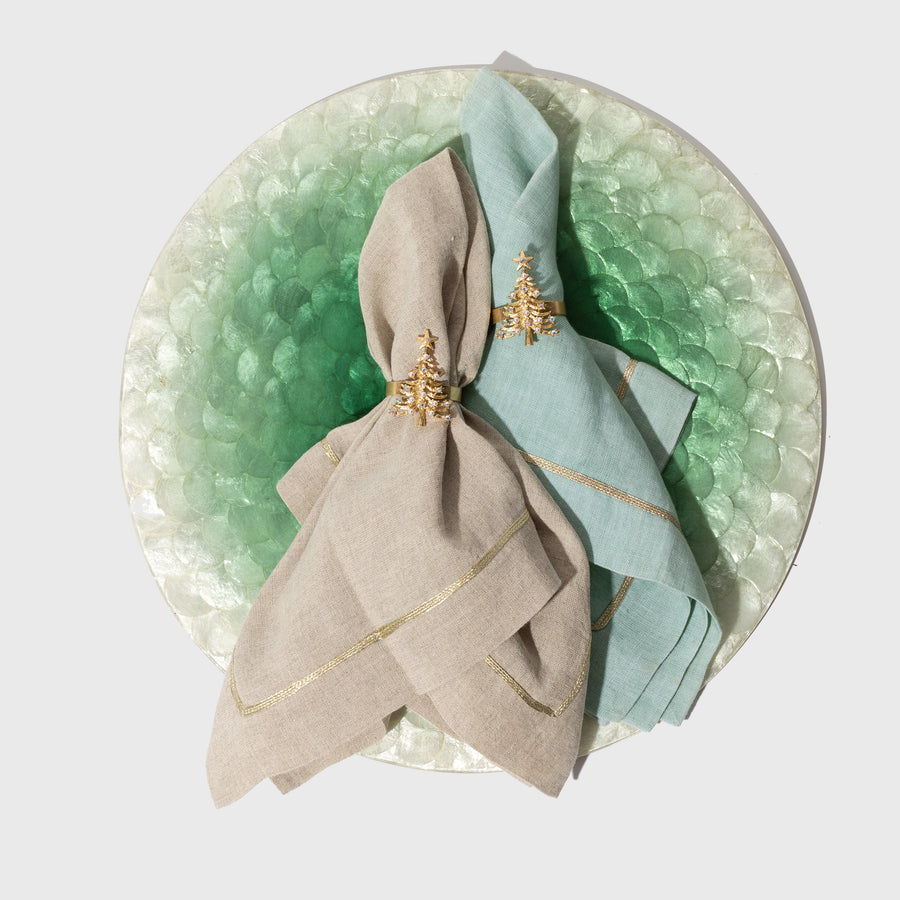I couldn't help myself!!! This twinkling gold tree on our skinny band is such a treat for Christmas! We also loved the idea of this Christmas tree napkin ring being used on the capiz mats for a more 'island' vibe Christmas gathering!