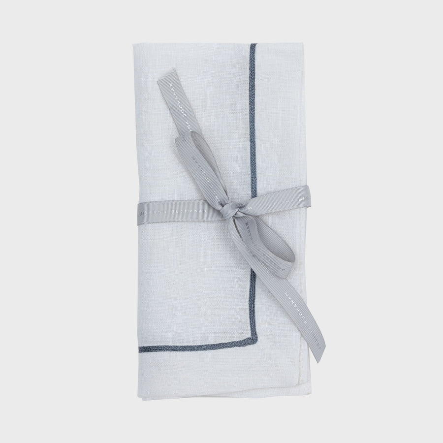 Never a boring white napkin! Really feeling silver tones right now so this linen dinner napkin features an intricate gunmetal metallic trim that will give an extra dose of glamour to any tablescape! So versatile and yet super special at the same time!
